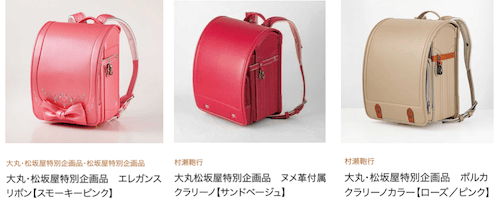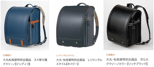 大丸松坂屋は人気ブランドのランドセルも多数取り扱っており、例えば以下の通りです。