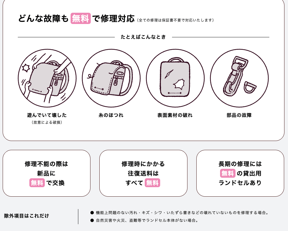 というのも、池田屋のランドセルは以下の4つの点から機能性・アフターサービスに優れているからです。