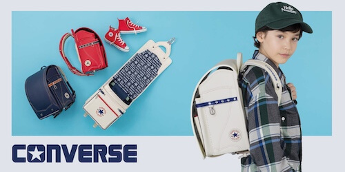 「公式ページ」は、シンプルでスタイリッシュなコンバースのデザインに、かわいさとおしゃれさを兼ね備えたランドセルです。