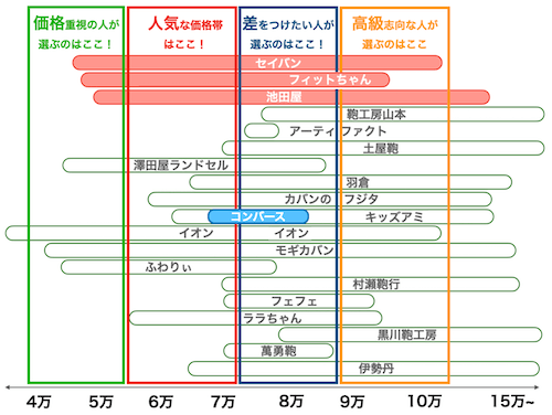 ランドセル選びで人気の価格帯は約5〜7万円で、6万円台から手コンバースはこの価格帯です。