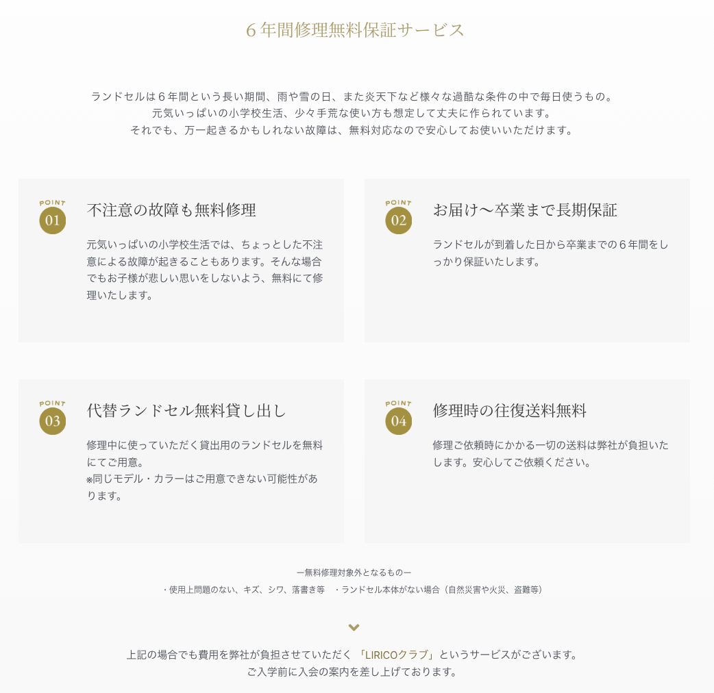 LIRICO(リリコ)」のランドセルはデザインだけでなく、基本機能やサービスもしっかりしています。
