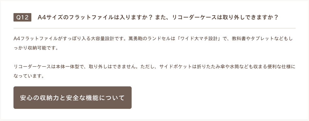 萬勇鞄のランドセルは、デザインやカラーが可愛いカッコいいだけではありません。機能面も充実しており、特に収容力は抜群です!