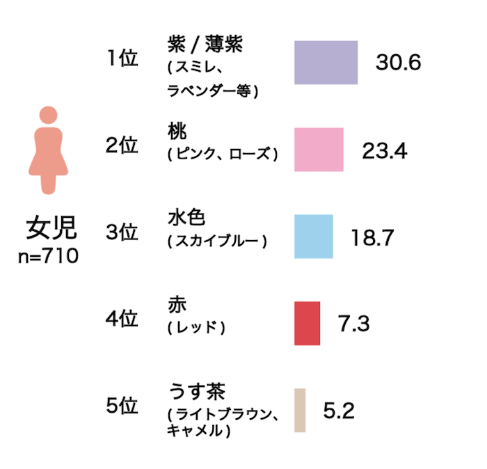 男の子の色は女の子と比較すると保守的な傾向があると言えます。