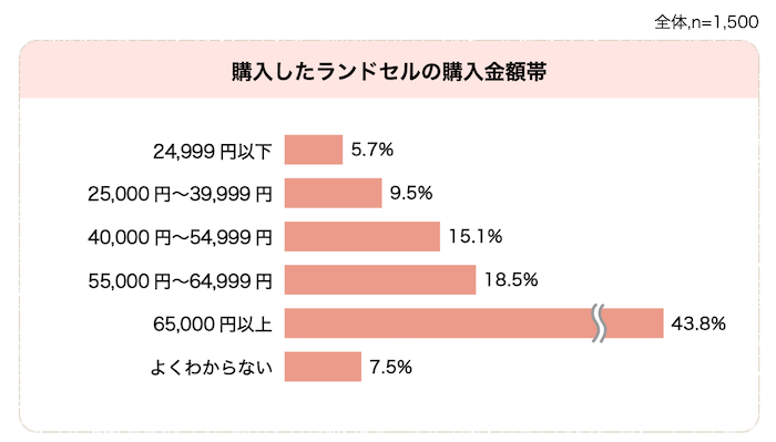 ちなみに、冒頭で紹介したランドセルの相場を、さらに細かく「価格重視」「人気の価格帯」「周りと差別化できる」「高級志向」に分けると以下の通りです。